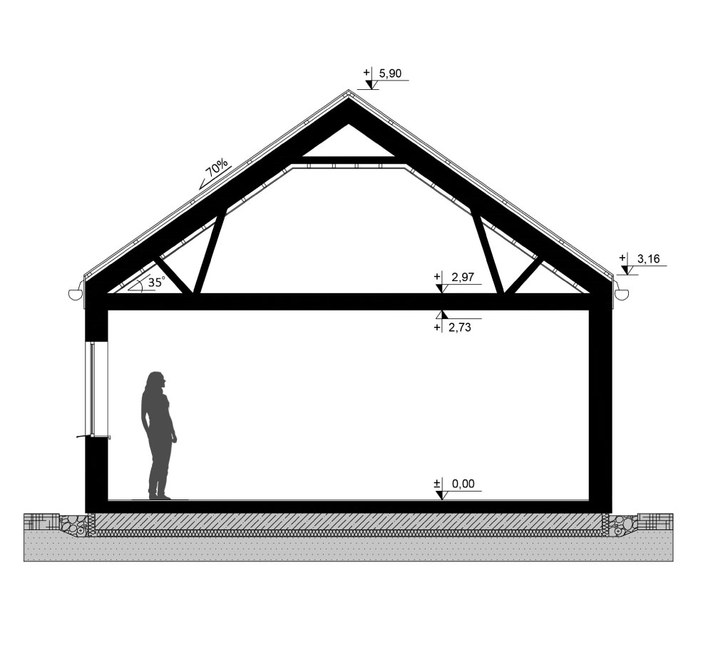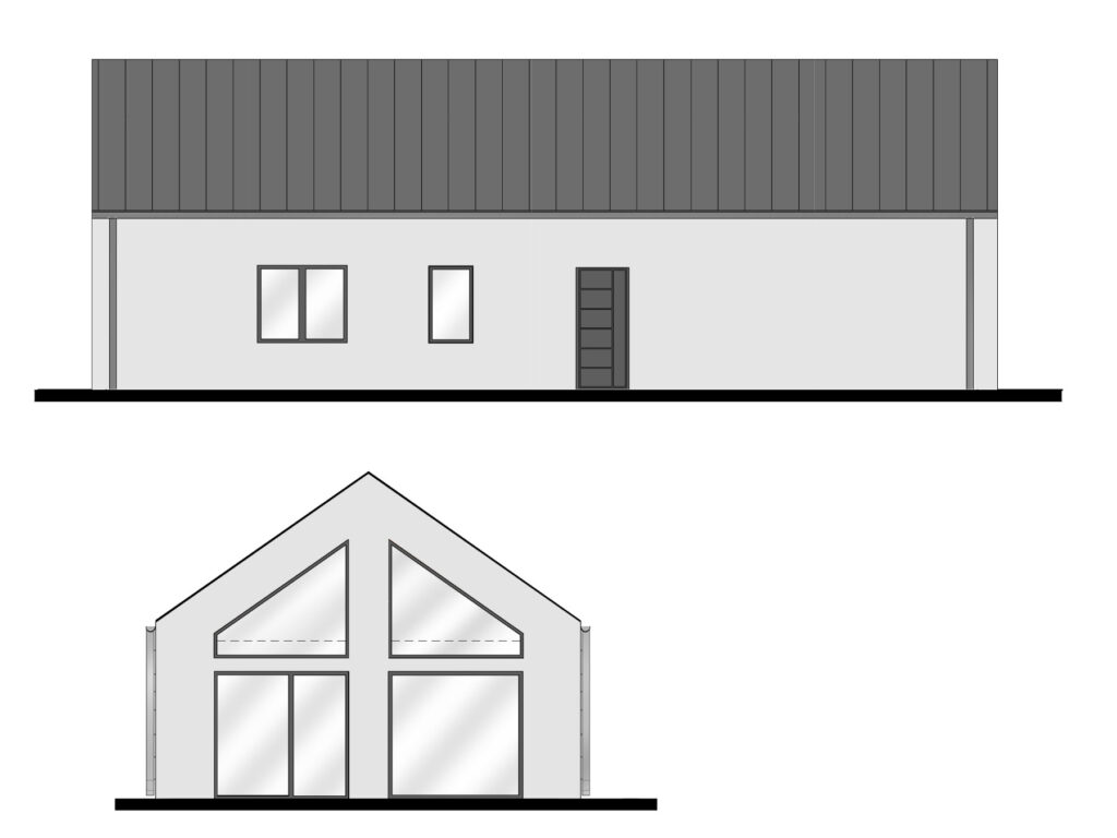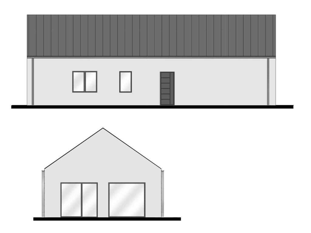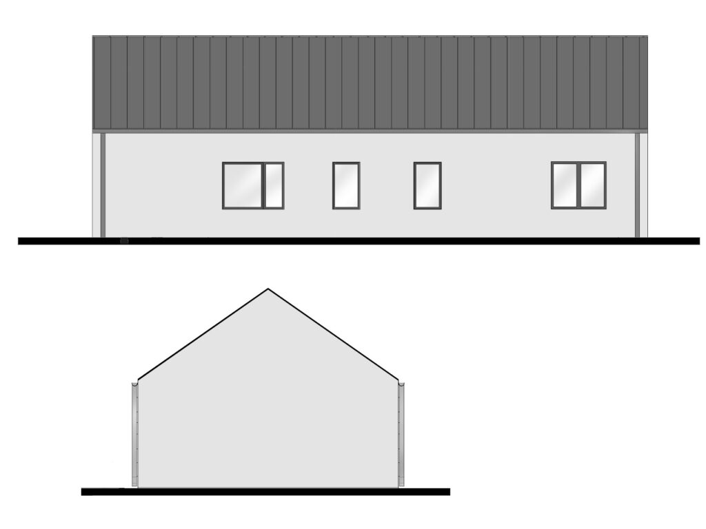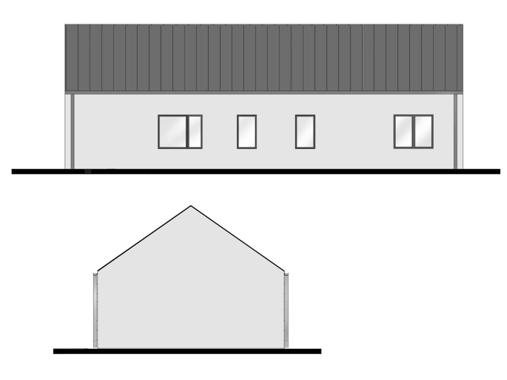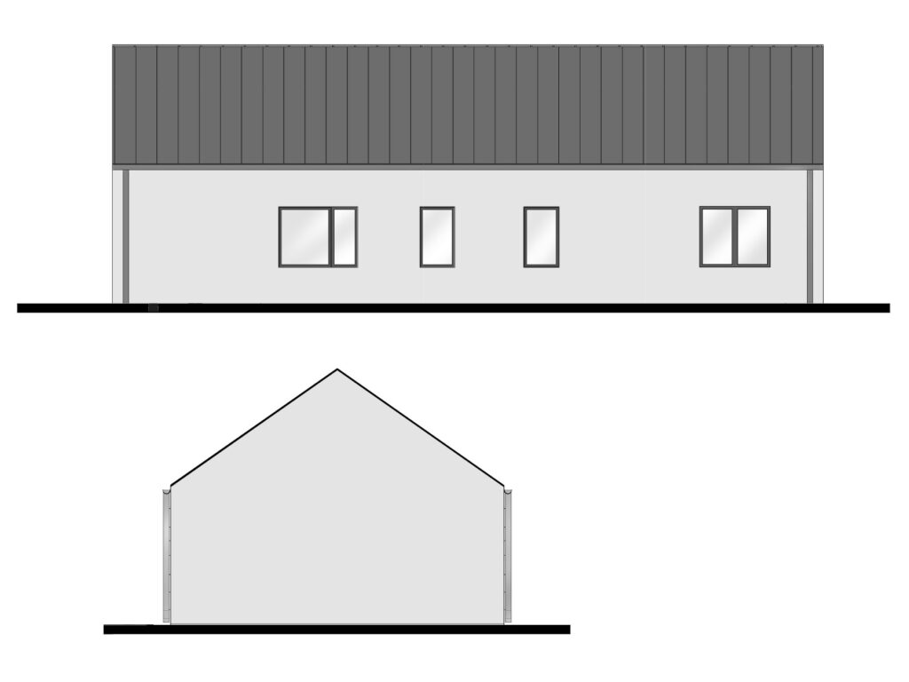 Dom 100m2 to idealne połączenie nowoczesnego designu z funkcjonalnością. Inspirując się konceptem nowoczesnej stodoły, ten energooszczędny projekt przyciąga uwagę dużymi frontowymi przeszkleniami, które wypełniają wnętrze naturalnym światłem, tworząc atmosferę otwartości i przestrzeni.